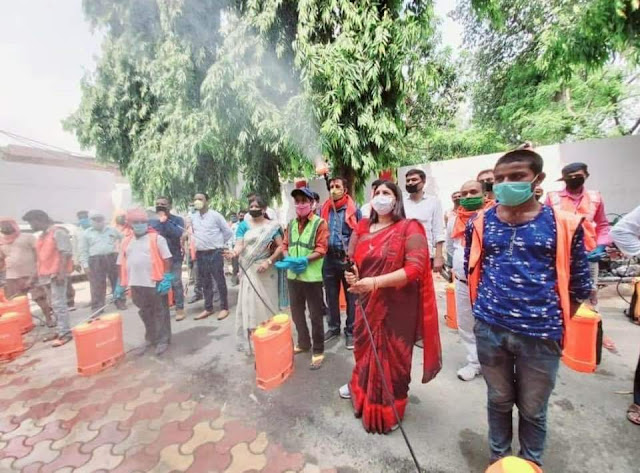 प्रयागराज। वैश्विक महामारी कोरोना की बढ़ती रफ़्तार की रोकथाम के लिए नगर निगम प्रयागराज द्वारा विशेष सैनिटाइजेशन अभियान के तहत साउथ मलाका नवाब की रसोई, के पीछे बस्ती मे, मुंडेरा, दारागंज मुख्य मार्ग, बहादुरगंज लछ्मण मार्केट, रामभवन, कोठपरचा, जयन्तीपुर, त्रिवेणी पुरम झूसी, आवास विकास कॉलोनी झूसी, इंडलपुर नैनी, एलनगंज, ए डी ए कॉलोनी नैनी, रम्मन का पूरा, लूकरगंज, जयन्तीपुर, सुलेम सराय, शहगंज, करैली, धूमनगंज, काजीपुर, चक दाऊद नगर, बहादुरगंज, स्टेनली रोड, ताशकंद मार्ग, शान्तिपुराम, ट्रांस्पोर्ट नगर, सैनिक कॉलोनी, लूकरगंज, अबूबकर पुर, मेडिकल चौराहा, महेवा, इंदलपुर गंगोत्री नगर नैनी, बालसन चौराहा, कटरा, दारागंज शमशान घाट, ताशकंद मार्ग, काजीपुर, चिन्तामणि रोड, मेडिकल कैम्पस, टैगोर टॉउन, छोटा बघाड़ा, बैंक रोड, चर्च लेन, मॉडल रोड मुट्ठीगंज, छोटा/बड़ा चौराहा मुट्ठीगंज सी आर पी एफ कैम्प, चंद्रलोक टाकीज के पीछे एव अन्य कोरोना मरीजो के घरों में सैनिटाइजेशन का कार्य सफलतापूर्वक कराया गया। इसके अतिरिक्त सभी शमशान घाटो पर पेयजल हेतु टैंकर की व्यवस्था की गई व करोना महामारी के बढते हुये प्रकोप को द्वष्टिगत प्रयागराज की समस्त छोट़ी,बडी़ गलियों मे बेहतर ढंग से सैनिट्रजेशन करने के लिये नगरनिगम के सभी जोनल अधिकारियों के मांग के अनुसार प्रयागराज के सभी आठों जोन मे 100 बैटरी संचालित सैनिटाइजेशन मशीन को समस्त जोनल अधिकारियों को दिया गया ।